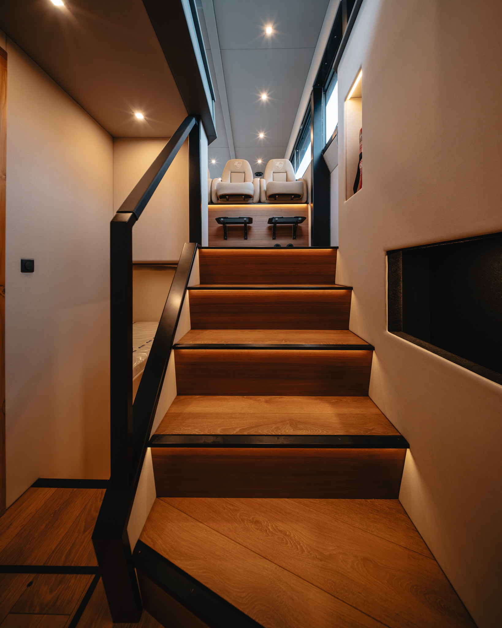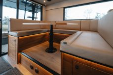Sisätilat heijastavat samaa käytännöllisyyden ja huolellisen käsityötaidon filosofiaa. Keulassa sijaitseva omistajan hytti tarjoaa täydellisen yksityisyyden ja siihen kuuluu tilava WC pesutiloineen. Mukava keskihytti, jossa on niin ikään oma yksityinen WC ja suihku, tarjoaa viihtyisän majoituksen perheenjäsenille tai vieraille – mikä tekee BY50 FLY Classicista ihanteellisen valinnan myös pidempiin oleskeluihin vesillä.