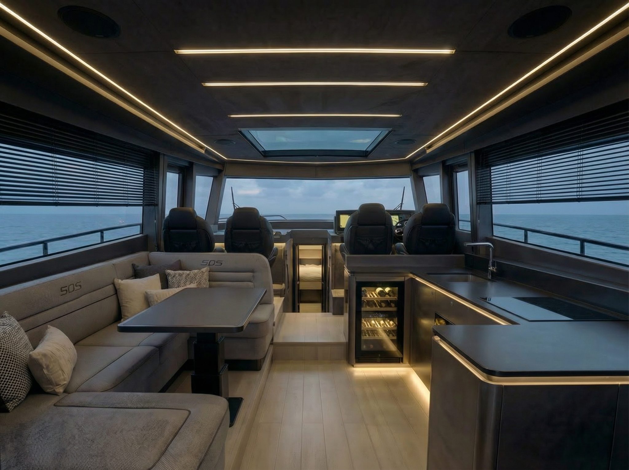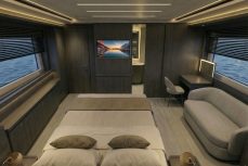 Omistaja voi valita joko modernin urheilullisen sisustuksen tai ajattoman nykyaikaisen konfiguraation – toteutettuna huolellisella yksityiskohtien viimeistelyllä. Keulan VIP-hytissä on oma WC ja suihkutila. Veneen koko rungon leveyden kattava omistajan hytti löytyy veneen keskiosassa tarjoten poikkeuksellisen tilan, mukavuustason ja omalla kylpyhuoneella – todellista luxustasoa.