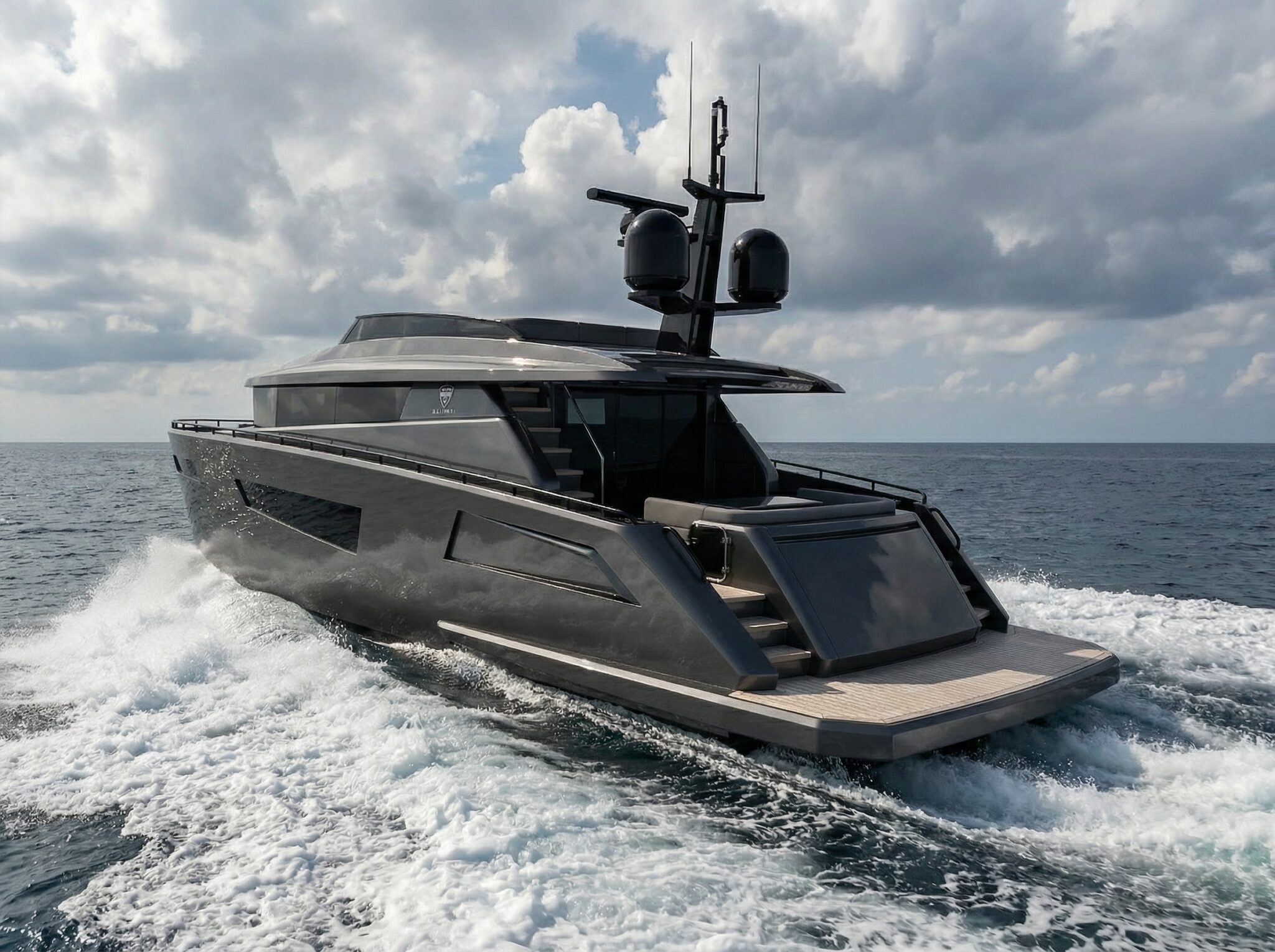 BY50S FLY edustaa BRIZO YACHTSin kokonaan uutta flybridge-malliston muotoilua. Sen moderni stealth-tyyppinen muotoilu ja karismaattiset linjat erottuvat välittömästi.