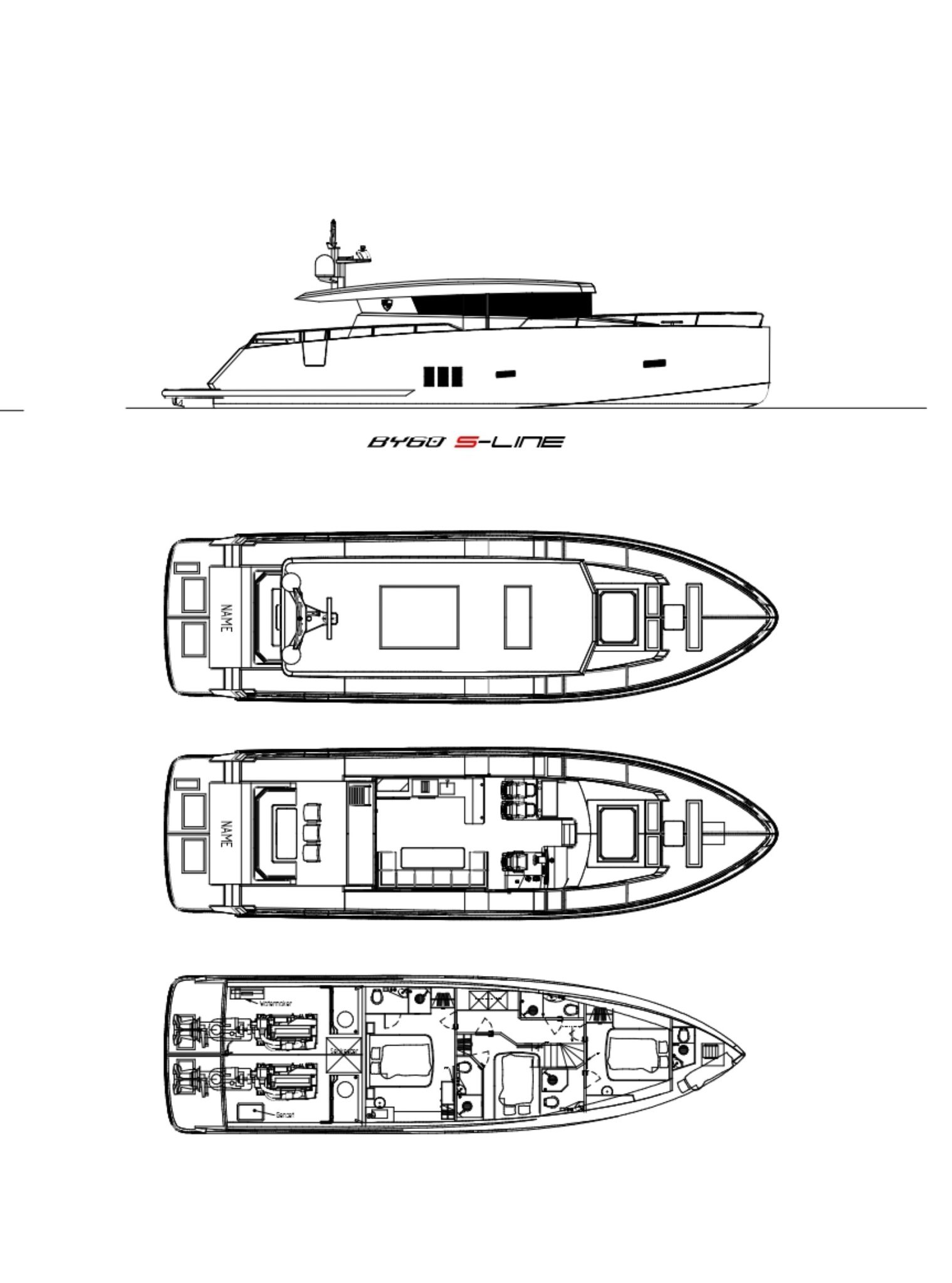 Vaikuttavasta koostaan huolimatta BY60S on suunniteltu poikkeuksellisen suorituskykyiseksi toimivilla tilaratkaisuilla, mikä tekee siitä huomattavan käytännöllisen pitkilläkin risteilyillä. Kaikki ulko- ja sisätilaratkaisut on suunniteltu helpon ja mukavan käytettävyyden näkökulmasta – tilavat oleskelutilat, saumaton kulku alueiden välillä yhdistettynä todellisen luksusjahdin mukavuustasolla.